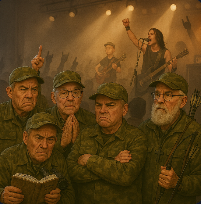 Konsertarrangøren har no innført “åndelig screening” ved ankomst, og jaktlaget har fått invitasjon til å halde “salmejam” på neste bygdefest – med lovnad om djevlefri røykmaskin og labert oppmøte.