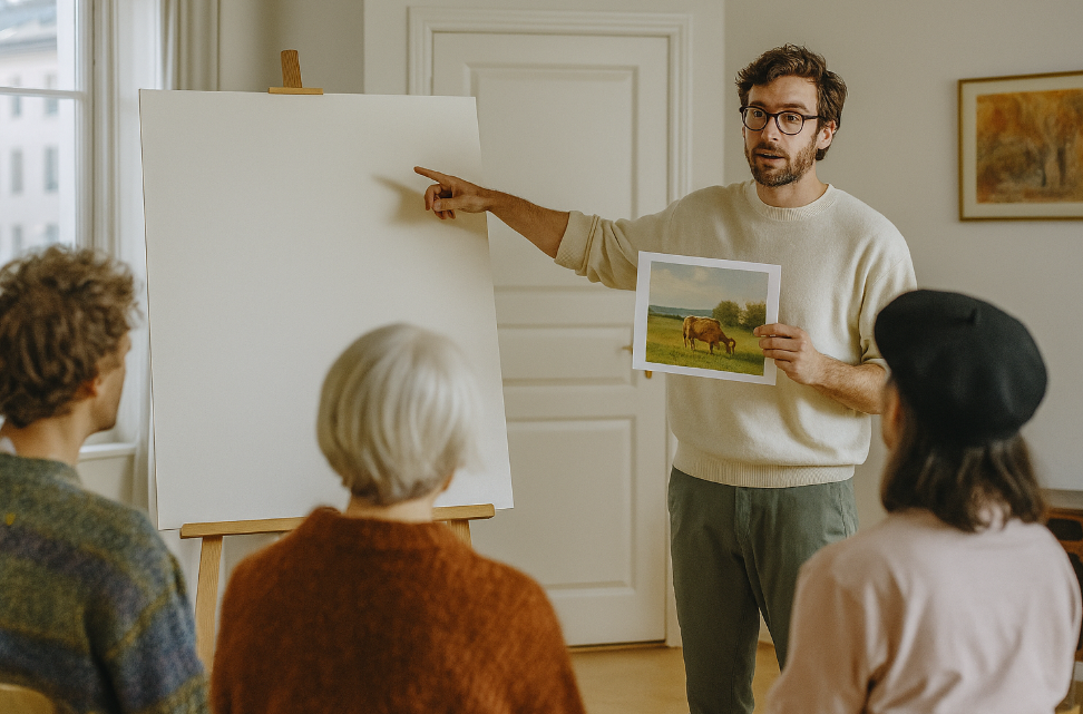 – Eg har prøvd å måle med ketchup, sykle gjennom lerret og rope dikt til Teslaladarane. Ingenting fungera. Kanskje eg berre skal måle ein båt eller eit kulturlandskap, sa ein resignert multimediekunstnar som ønskte å vere anonym.